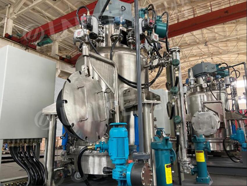 以在同一容器内 Continuous operation in the whole process of filtration, washing and drying; Operate under pressure or vacuum to realize solid-liquid separation. The cake is evenly distributed and the solid-liquid separation effect is good; The hydraulic pressure controls the rise and fall of the mixing system, and maximizes the slag holding space in the filtration; The mixing paddle is lifted and stirred, so that the filter cake and cleaning solution are fully mixed during cleaning, and the filter cake is fully washed; The drying time is greatly reduced and the efficiency is improved; The liquid outlet valve is controlled by many kinds, and the solid discharge system automatically discharges the material, reducing the labor intensity; It can be cleaned and sterilized online; The whole operation can be carried out under N2 protection, safe and reliable; Fully comply with GMP and FDA production requirements; The filter base plate is detachable, which is helpful for the thorough cleaning of the equipment and is suitable for the production of sterile APIs.