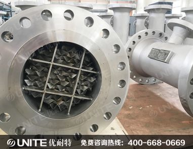 Jiangsu union SK static mixer is made of left and right twisted spiral pieces with single channel. The nonuniformity coefficient of liquid-liquid phase and liquid-solid phase is σ x ≤ 1-5%.